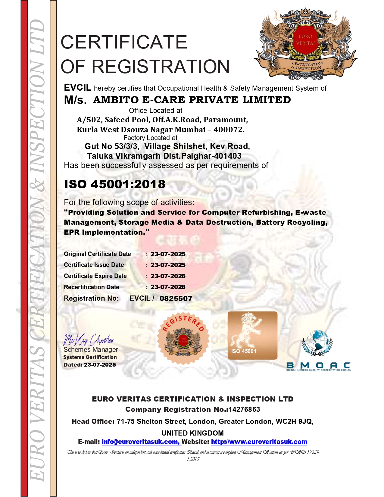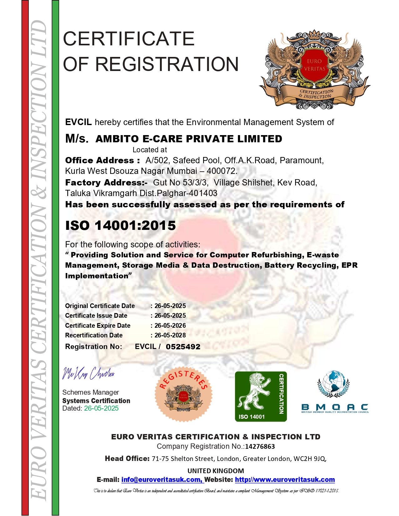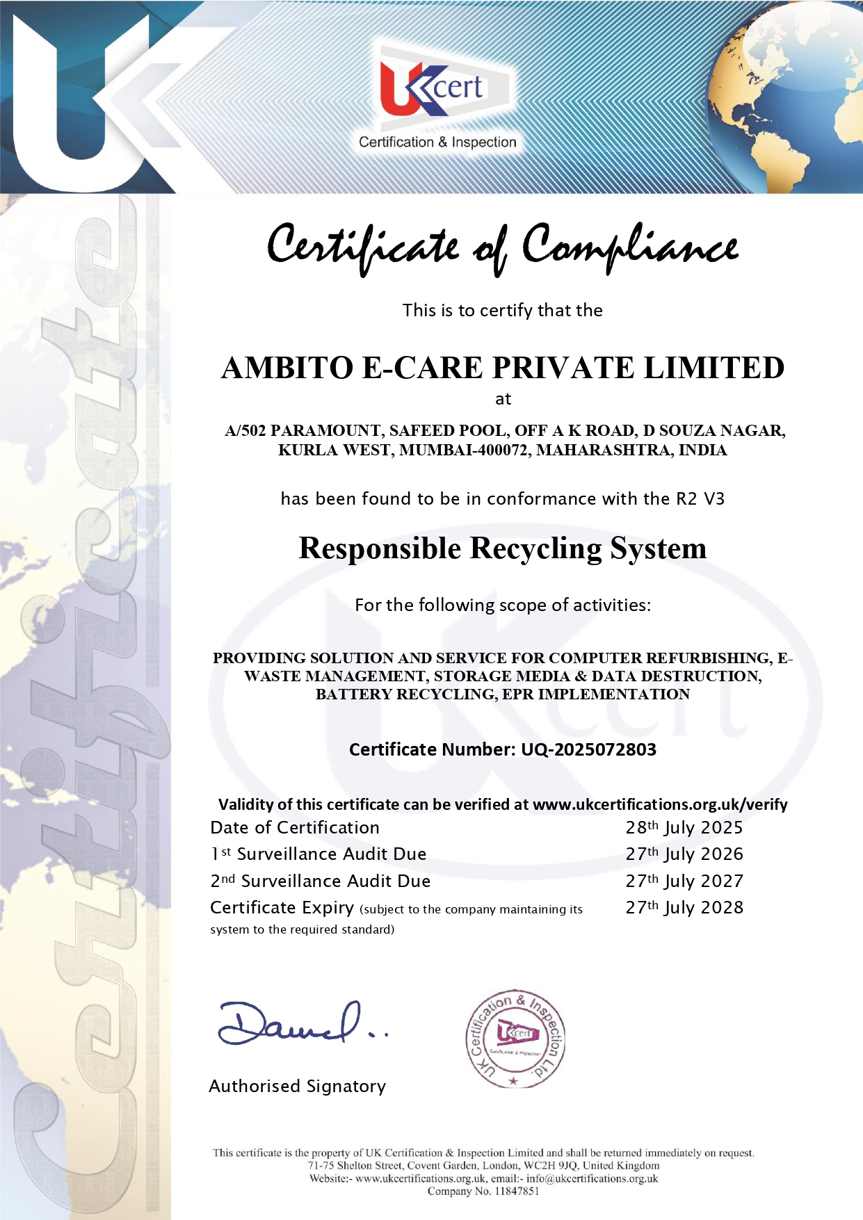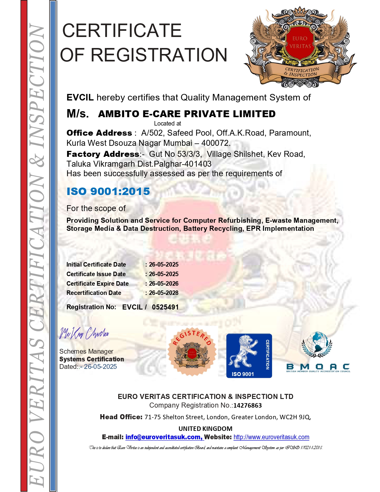 Reduce landfill contribution of electronic waste. Ensure 100% data destruction & compliance. Promote awareness about responsible e-waste disposal. Support circular economy initiatives