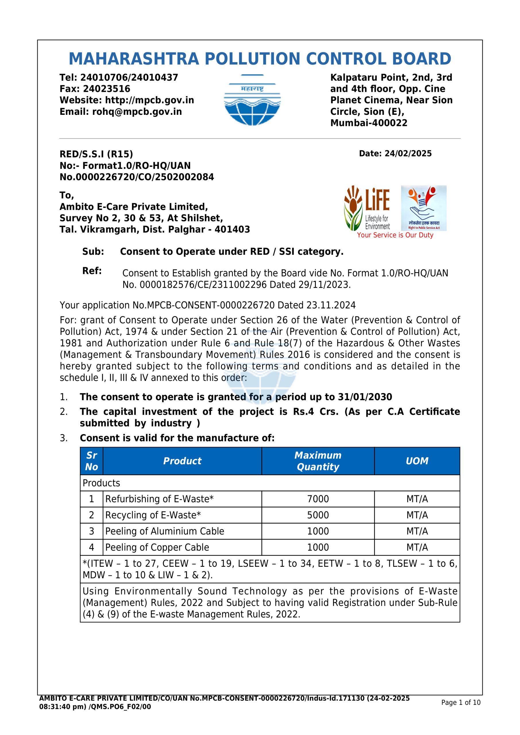 Yes, we are a government-authorized electronic waste recycling company following CPCB & SPCB guidelines.